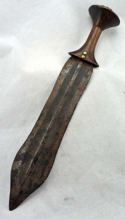 A forged iron sword with fine incised design, inlaid brass dots, overlaid brass strips, finely carved wood handle with deep patina. Wood handle bound with steek strip and brass conical pommel. On custom stand, 23 inches high. Guaranteed by mon, jul 20. These congolese swords serve a multitude of purposes, require an assortment of special talents to create, and, like excalibur, are also associated with magical powers. Please keep in mind that it carries marks and He was a former soldier who originated from monkoto, tshuapa. Reviews (0) reviews there are no reviews yet. Base measures 10' x 2'. The blade is very elaborately forged, with typical scallops that identify it as a ngulu. Antique african congo boa sword / knife. Vintage african maasai hunting spear weapon iron blade kenya african art 35 atq. Believed to have evolved from either battle axes or farm implements, this intimidating weapon was used in ancient egypt.